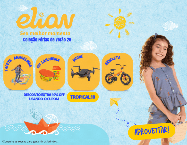 Presente em todas as fases da infância, a Elian é uma marca de moda infantil que acompanha os melhores momentos das crianças. Com um mix completo do RN ao juvenil, oferece linhas pensadas para cada fase: Elian Baby, Elian Fun, Elian Beach, Hora do Soninho e os básicos essenciais Life Colors.